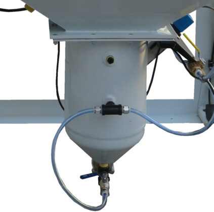 The 3030 Savage comes equipped with a very large 700 cfm exhaust blower and separator reclaimer. Included is the negative pressure 220 sq.ft. MERV tested cartridge filtration with hopper dust storage and semi-automatic vibrator cleaning cycle found on the Production Charger Model.