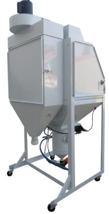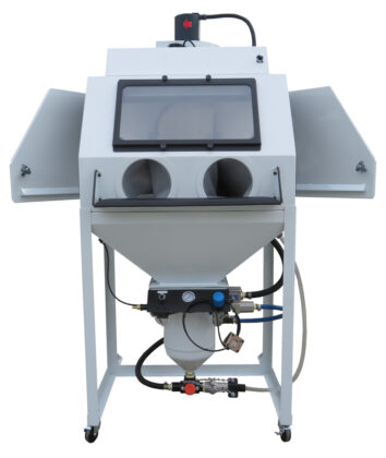 ABS Products pressure machines are available in many sizes for many different applications. The NEW Pro G/S model is a more compact cabinet size that has specific applications for blending repaired parts, heads and other repaired items. Matching Factory Finishes, Camouflaging Repairs and Blending 3-D parts is also a Pro G/S application. This New Pro G/S design fits those small spaces, perfect for R&D (research and development) and smaller shops when direct pressure is needed.
